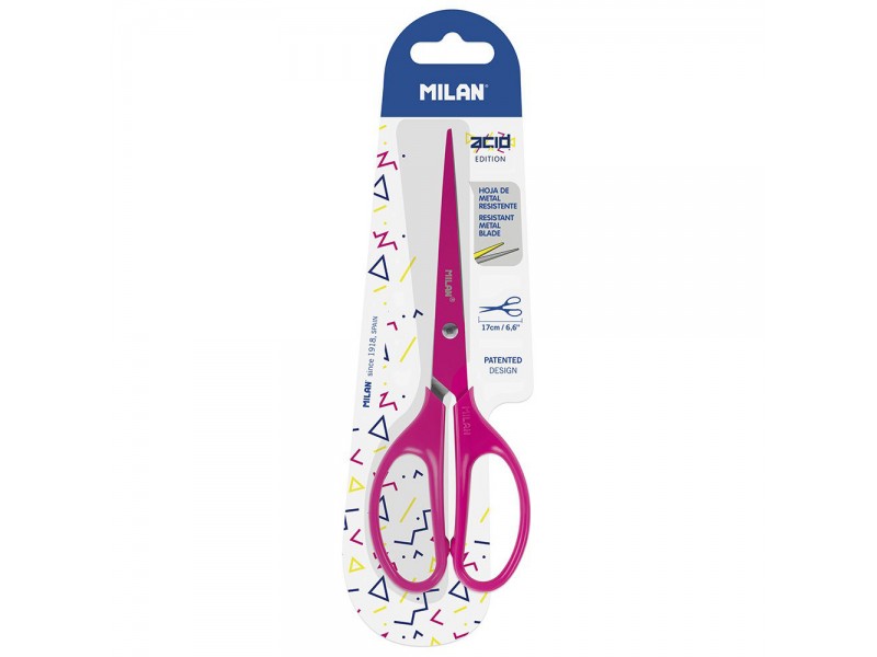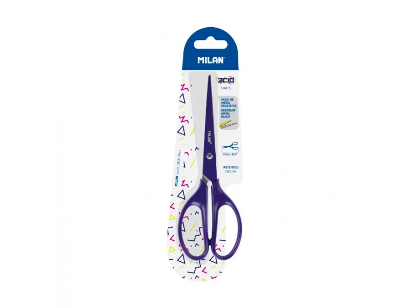 Tijeras de oficina con la hoja del mismo color que la empuñadura.