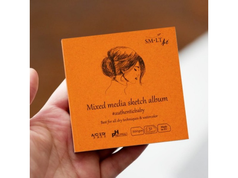 El interior del papel no contiene ácido, tiene pH neutro y certificación FSC. Forma cuadrada, tamaño de bolsillo, con cubierta frontal y trasera extra dura de color natural. Pegado.